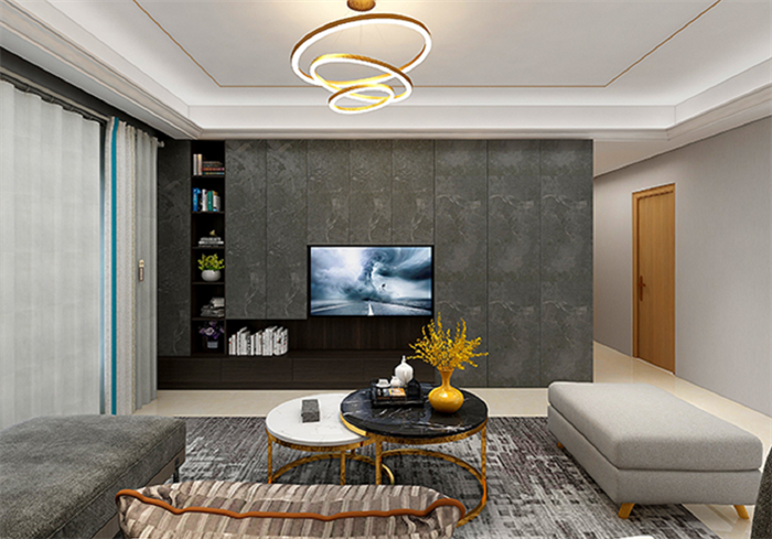 客廳的電視背景墻是用深灰色護墻板做的,它既是裝飾背景墻,同時也是儲物柜,客廳要用到的小物件可以直接放在里面,超實用的,而且裝飾效果也yyds!