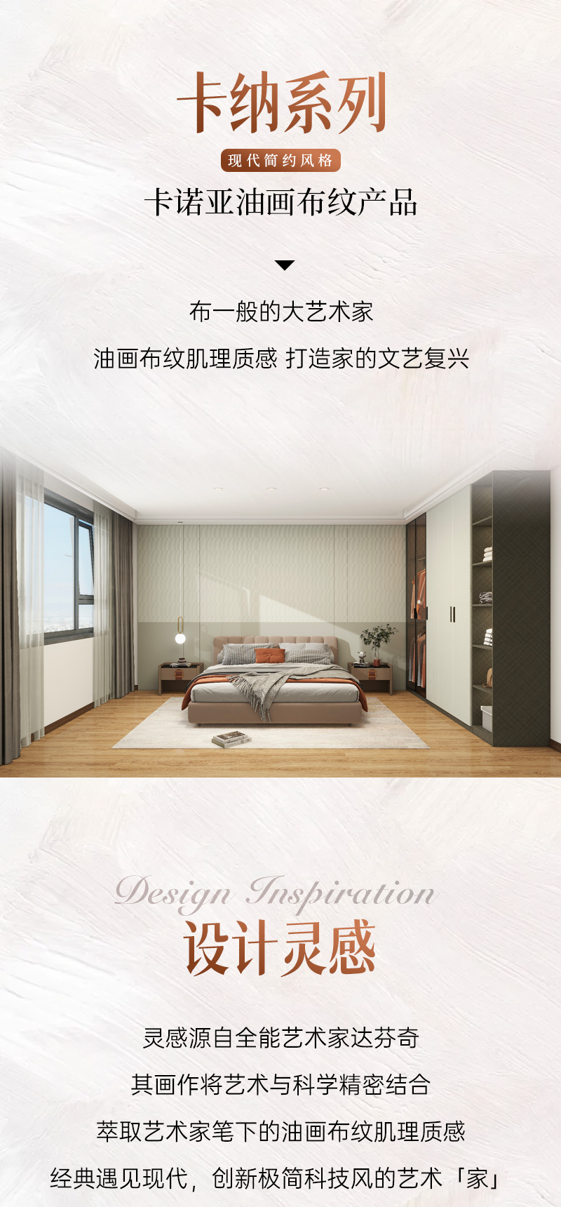 通過(guò)特殊壓貼工藝,打造精致絲絨布紋、經(jīng)典菱紋肌理,猶如館藏潘畫(huà)般的質(zhì)感,演繹“布”一般的生活美學(xué)