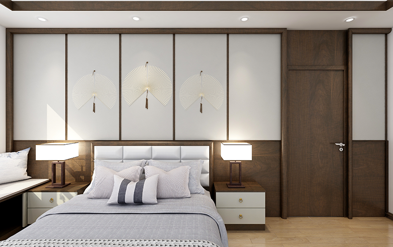 護墻系統(tǒng)對稱均衡的整體布局,配合溫婉爾雅的配套家具,宛如唐詩宋詞走出來的景致。深淺色調(diào)搭配的護墻系統(tǒng)讓整個空間呈現(xiàn)出豐富層次感,彰顯新中式的沉穩(wěn)基調(diào)。墻面搭配中式經(jīng)典元素的掛飾,細細訴說著東方文化源遠流長的魅力。