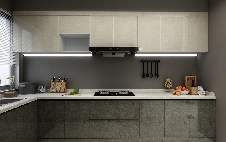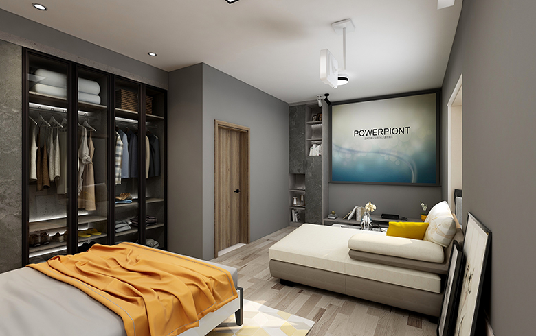 以黑白灰為主體色,的極簡風格家居設計,配上一部分深色木紋,緩和空間色調。凸顯出簡約而不簡單的現代簡約風格設計。