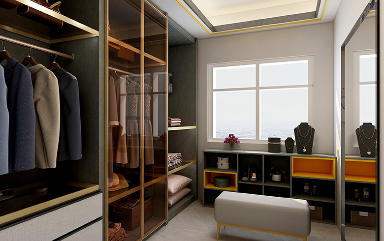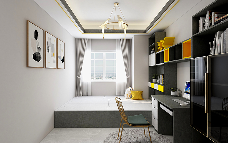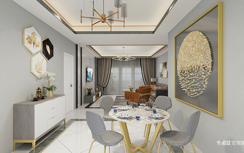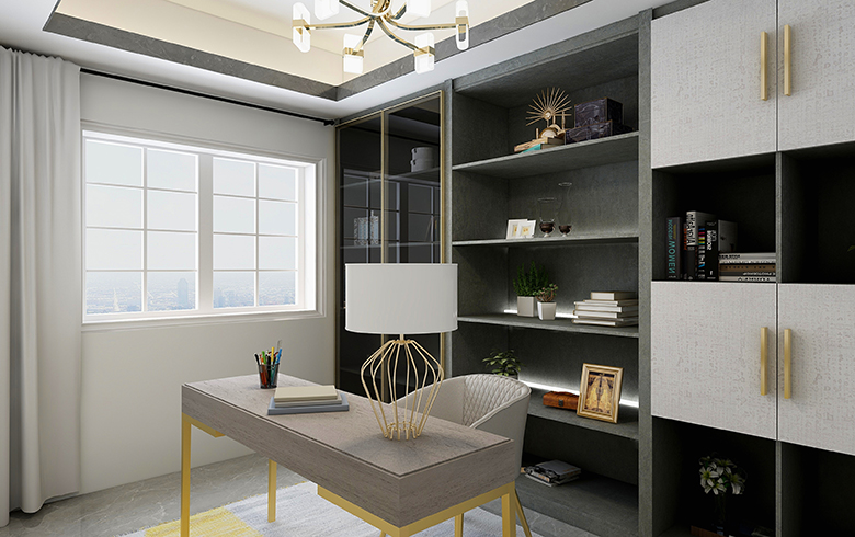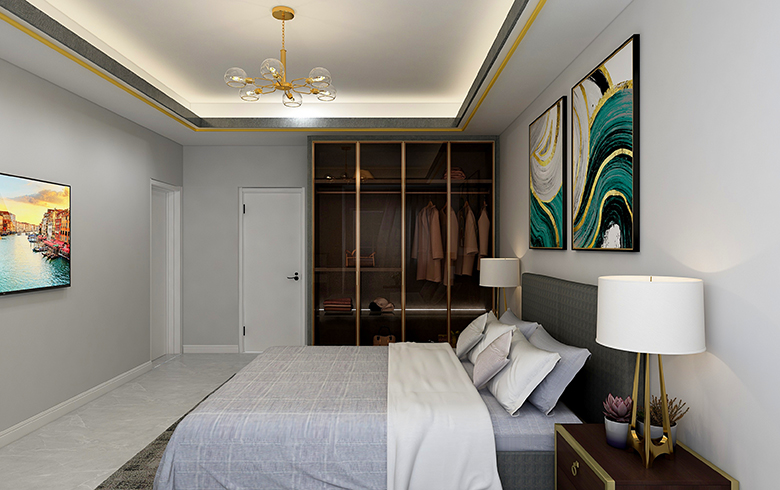 房屋空間四室兩廳兩衛(wèi),套內(nèi)面積111平米,四室分別是主臥,次臥(榻榻米),書房,衣帽間,滿足了三口之家的日常使用需求,使空間利用率達到最大化。全屋柜體采用深色板材,運用玻璃門和淺色門板配金色拉手,通過棚線和家具顏色的搭配來達到風格統(tǒng)一,打造輕奢風格。客餐廳通過金色家具和軟裝,淺色的壁紙,體現(xiàn)溫馨的氛圍。