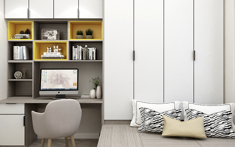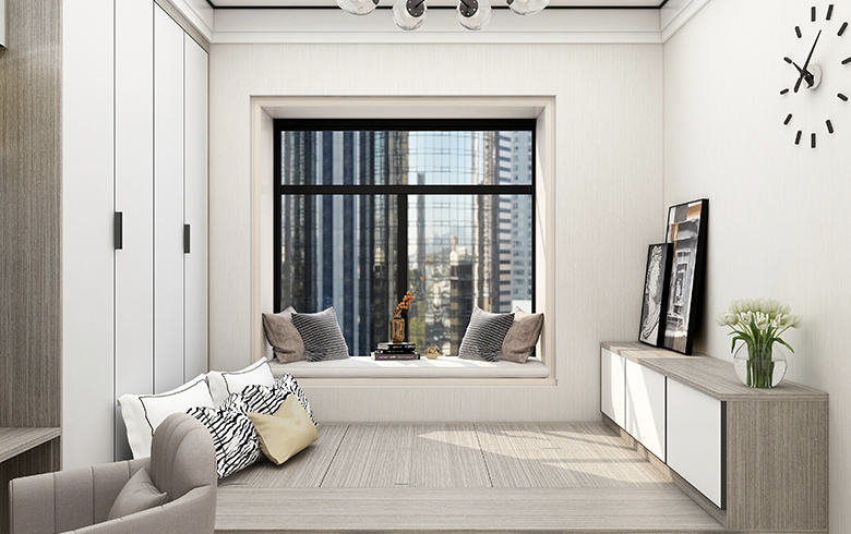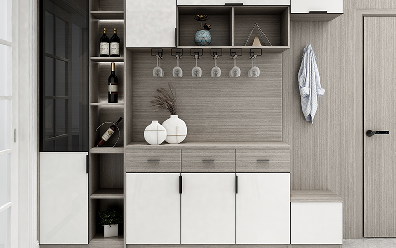 從玄關到客廳,再至餐廳,廚房,臥房,書房,空間主角都是灰色,白色,溫馨的銀絲木與珍珠白的柜體突顯優雅又帶來溫馨的家氛圍。
