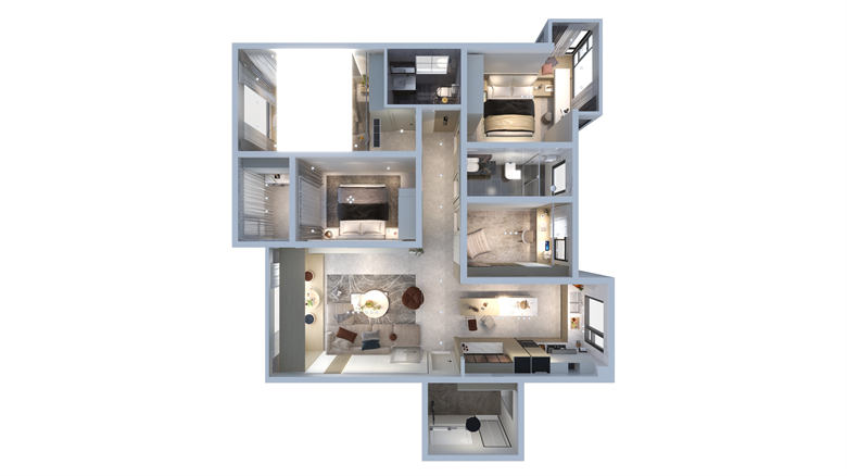 本作品是為解決一家人的生活需求所創(chuàng)作。作者希望在紛擾的世界有每個人都有屬于自己的一方天地,讓家的意義更明顯。讓房間產(chǎn)生溫度的不僅是收納,功能,顏值,還有對生活和家的熱愛。