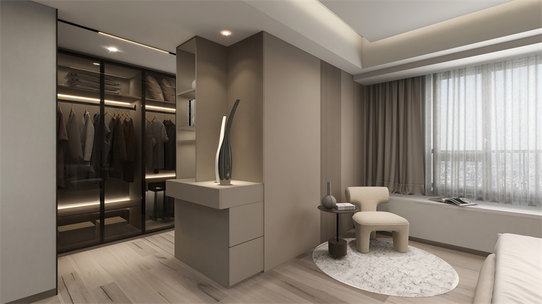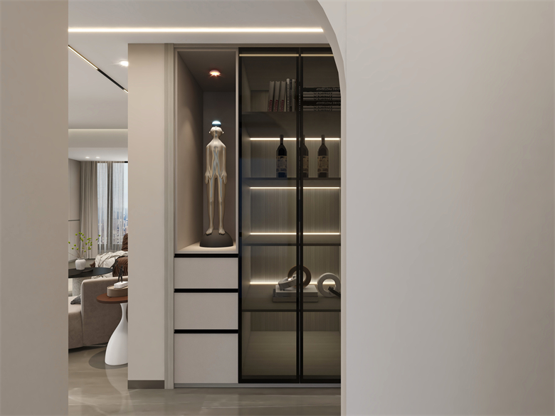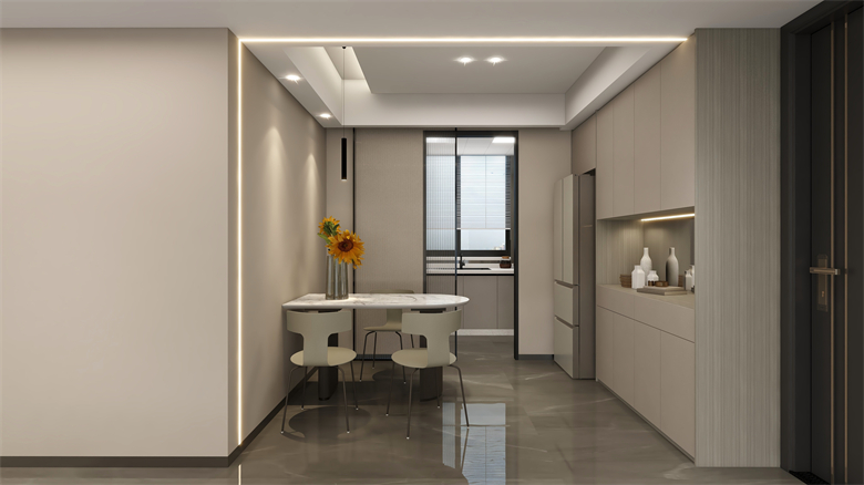 簡約風格強調自然、簡潔、方便。應業主要求做至更貼切,更自然更實用。墻面利用單色調,再用擺件或裝飾畫進行裝點,做到小而溫馨的一家三口小居室。