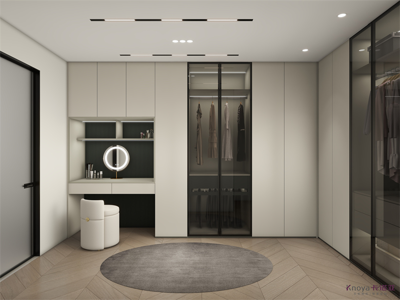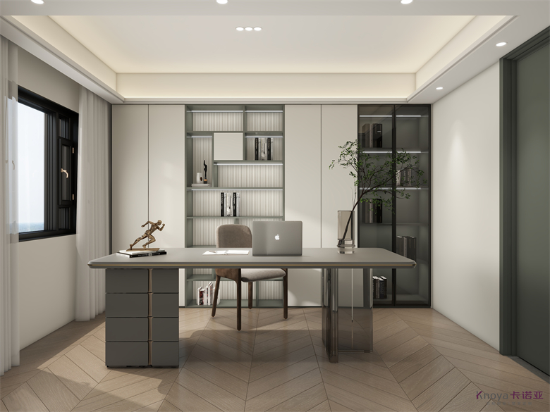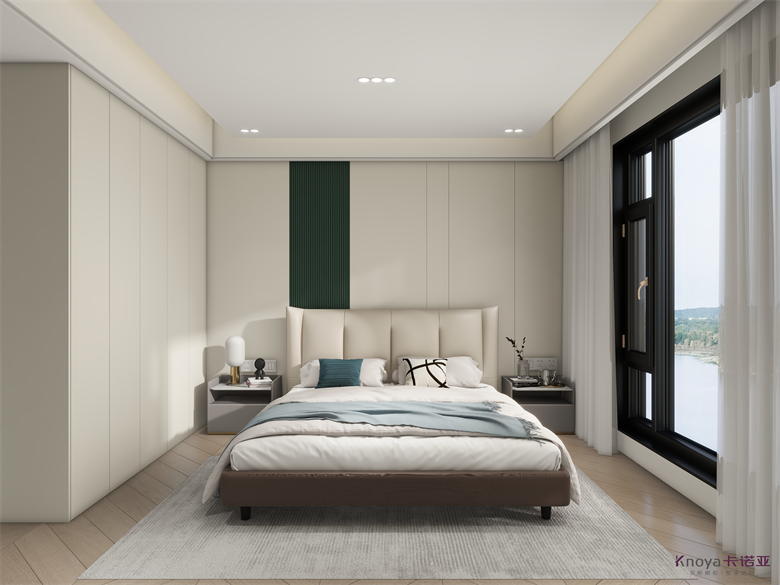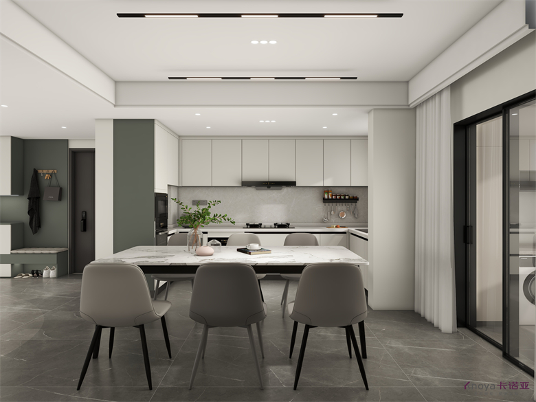 作品介紹:空間以簡潔明快的淺色為主,無主燈的設(shè)計(jì),極簡中又不失淡雅,呈現(xiàn)明亮干凈的美,再用小面積輔以明亮的色彩,凸顯出空間層次。客廳的亮點(diǎn)在于電視背景墻,底下鏤空的設(shè)計(jì)比較少見,電視背景墻后面便是休閑區(qū),收納柜和鞋柜銜接形成一個(gè)整體。餐邊柜和入戶玄關(guān)銜接,入門即是風(fēng)景。開放式廚房和餐廳,讓空間看上去更加寬敞。主臥青綠色點(diǎn)綴,增加層次,衣帽間梳妝臺一體,L型衣帽間將空間分成兩塊,避免了衛(wèi)生間對著床的現(xiàn)象。次臥陽臺休閑區(qū),有著一整面的收納柜,可以看書,也可以娛樂。床背景上下分段,加上燈帶增添氛圍感。書房鏤空玻璃門木門虛實(shí)結(jié)合。