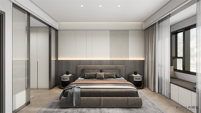 設計簡介:對于空間的動線和視線所到之處都有著細節統一的設計,在對于景的配色處理上是環環相扣的,在材質選擇上互相穿插,色彩空間相互呼應,將不同的材質融合,碰撞出不同的火花,追求內心永恒的潮流。設計師獨到的見解,將整個空間銜接一體,又讓每個區域都有自己的韻味。整個房間是現代簡約風,干凈整潔,墻壁、燈光、家具等細節處理,都展現了自己獨特的風格和對美的追求,色彩淡雅卻又不失質感,每處細節都為舒適度添彩。