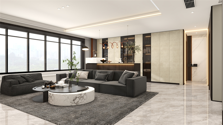 整體空間以現(xiàn)代輕奢風(fēng)格的設(shè)計(jì)基調(diào)為主,布置上簡約時(shí)尚的家具,營造溫馨的家庭氛圍;利落的線條搭配舒適質(zhì)感的軟裝;開闊的空間為整個(gè)設(shè)計(jì)帶來自由閑適;迎合業(yè)主家庭成員的需求,將空間最大利用設(shè)計(jì)化,暖色調(diào)的燈光布置,整體溫暖舒適;各種材料相互協(xié)調(diào),帶來時(shí)尚的氛圍。