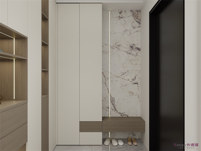 作品簡介:極簡風若是融合以原木風,便會自帶幾分活力、深色木材便更顯低調的奢華,與灰色的大理石地面相配,統(tǒng)一的色調帶來無與倫比的融合感、
