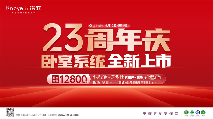 伴隨五一裝修黃金周臨近,恰逢卡諾亞23周年慶臥室系統(tǒng)盛大發(fā)布之際,為滿足消費(fèi)者的品質(zhì)消費(fèi)需求,卡諾亞五一盛惠風(fēng)暴于4月12日到5月5日強(qiáng)勢(shì)登陸全國各地專賣店,包含12800元臻選臥室套餐、11800元享在臥室套餐、10800元學(xué)在臥室套餐、28800元康醛整家套餐、8999元全屋配套家品套餐、舊櫥煥新套餐等,下定即享4大超值福利,帶來高質(zhì)價(jià)比的促銷盛宴,為不同消費(fèi)群輕松定制不一樣的專屬生活方式。