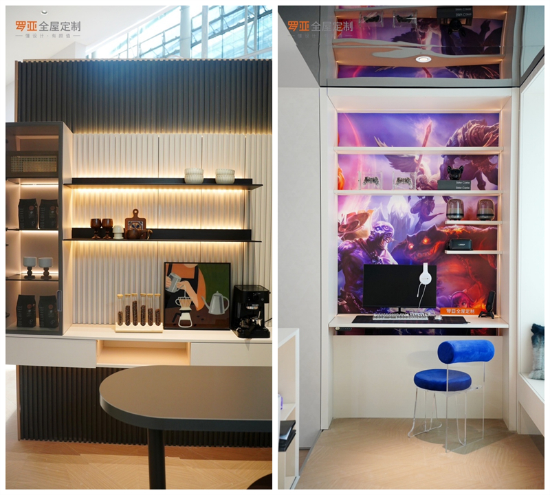 由于生長環境不同,他們對家的定義也完全不同。在他們看來,家已經不止是一個睡覺吃飯的地方,也是社交、辦公、娛樂的場所,是這屆年輕人生活方式的全面載體。羅亞全屋定制對于產品力的構建,就是回歸年輕消費群體深層次的需求,以主題場景、生活方式重構Z世代的時尚家居。這次展會展示的“咖啡時光、心靈療愈、萌寵樂園、怡樂花藝、文創閱讀、悅動生活”等多個主題場景,展示年輕人熱愛的生活方式,除了視覺感官的愉悅,還滿足情緒感受,是羅亞全屋定制洞察年輕消費者的代表作。