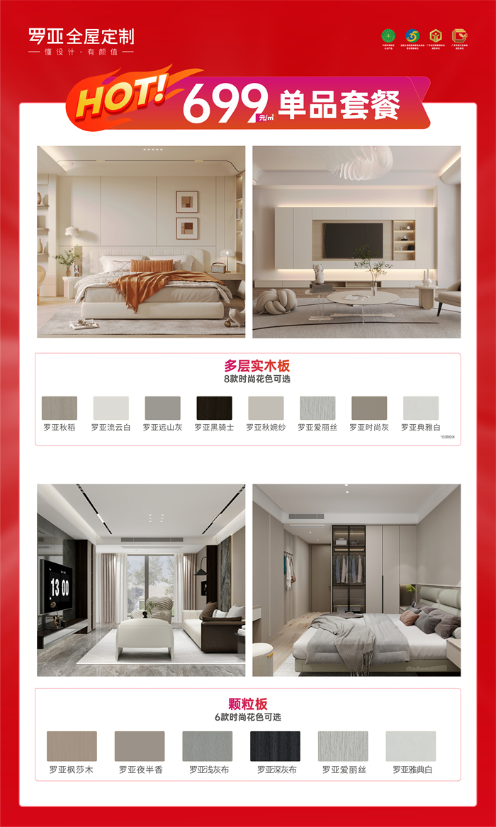 品質消費時代,多層實木板作為一種具有高環保性能和優越物理特性的板材,逐漸成為品質家裝的標配。此次雙節大促,羅亞在全國各地門店聲勢浩大掀起多層實木板的普惠風暴,為消費者打造更高顏值、更高品質的家居生活。羅亞重磅推出多層實木板,嚴選寒帶木種,擁有縱橫交錯膠合11層、結構穩定抗變形、握釘力好、強度高、防潮更強等優勢,擁有多款時尚花色,全方位滿足年輕消費者對于“心價比”的消費需求,使用高端板材打造年輕人的第一套房,構建全新的家居消費體驗。