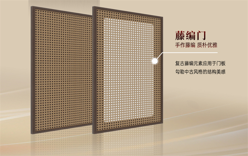 吊柜采用手作藤編柜門,質(zhì)樸優(yōu)雅,勾勒中古風(fēng)格的結(jié)構(gòu)美感,搭配骨骼門島臺,讓空間更有質(zhì)感和格調(diào)。清秋胡桃與藤編元素彼此呼應(yīng),將中古風(fēng)的懷舊與精致展現(xiàn)得恰到好處。