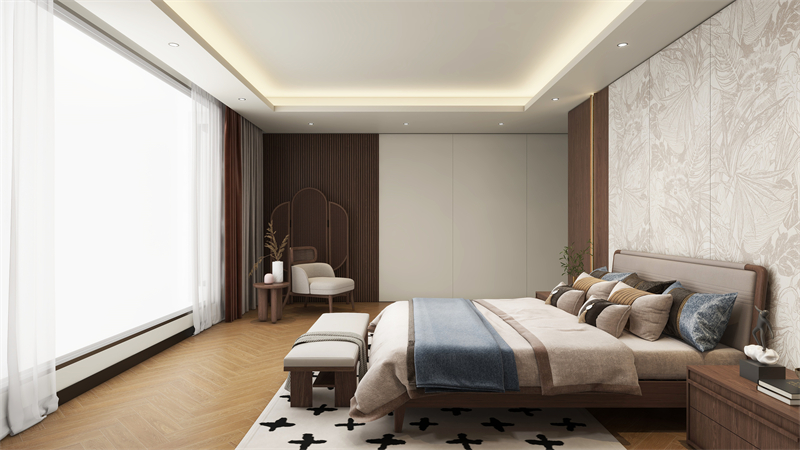 靠窗一隅別致的閱讀角,床側(cè)的梳妝臺……打造多功能主臥套房。