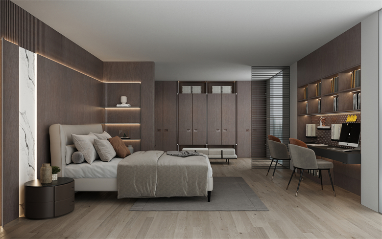 產(chǎn)品配置上,藏玉系列盡顯匠心。配色方面,瑯華胡桃將玉石內(nèi)斂溫潤的質(zhì)感與復古韻味的胡桃色相結(jié)合,羽裳的紋理如仙袂飄飄,為空間暈染出超凡脫俗的韻致。柜門元素設(shè)計多樣,如兩邊倒角 R18、銑型工藝縫、原創(chuàng)K冕設(shè)計拉手等,K冕拉手搭配兩側(cè)倒圓邊設(shè)計,配合工藝線條連貫整體,賦予空間立體靈動、大氣奢華的質(zhì)感。材料選用上,有金屬與木皮的碰撞等,甄選的天然進口胡桃木皮紋理自然、沉穩(wěn)深邃,木皮厚度為 45-50 絲,做出來的家具實木感強,油漆上色性好。
