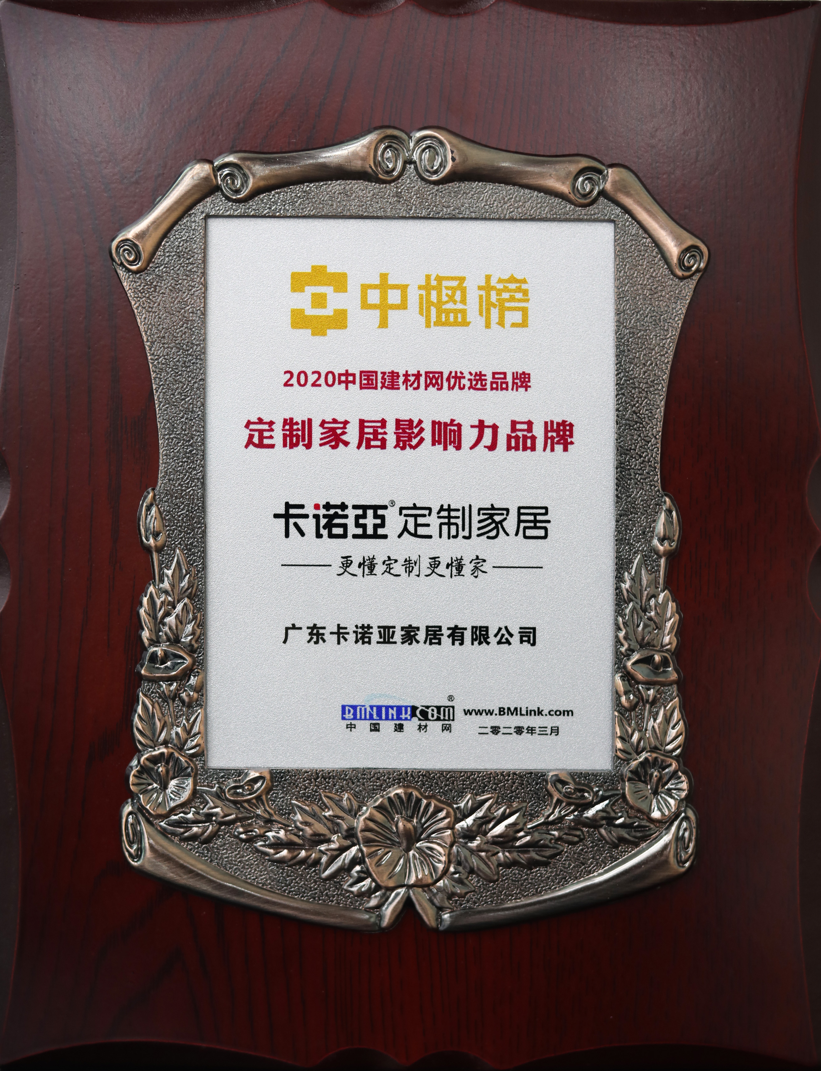 “中楹榜”甄選建材各界有分量的品牌,以中楹“中國美好生活家”的寓意,凝聚行業品牌,鼓勵、促進建材行業的創新與發展。本次評選活動,卡諾亞在眾多定制家居企業中脫穎而出,榮獲“中楹榜”2020優選品牌“定制家居影響力品牌”。