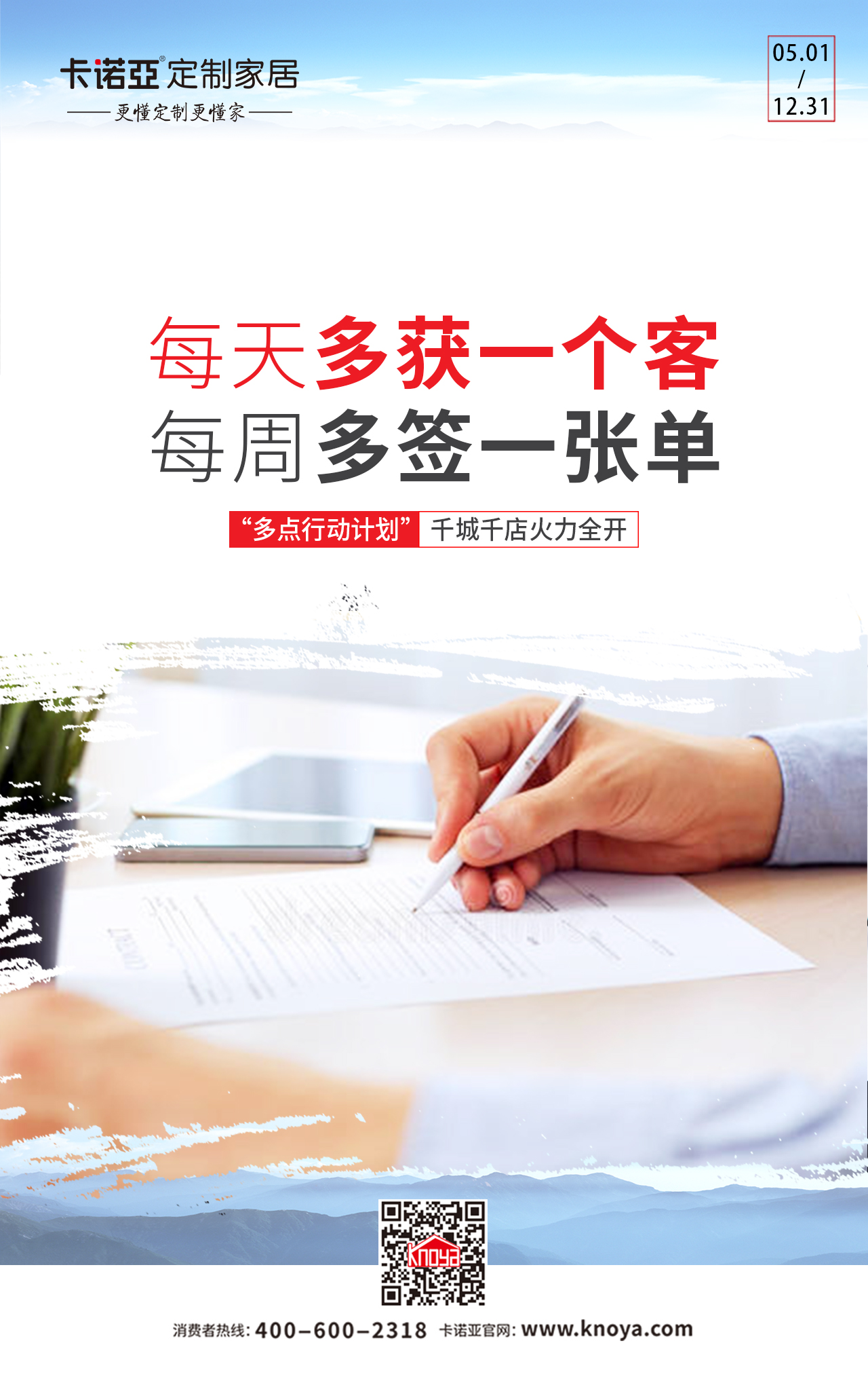 為此,卡諾亞“多點(diǎn)行動(dòng)計(jì)劃”的“每周多簽一張單”的核心是提升店面專業(yè)服務(wù)能力,內(nèi)容涵括店面形象、目標(biāo)管控、人員素質(zhì)、方案設(shè)計(jì)、待客流程等多個(gè)層面,通過貼心細(xì)致的服務(wù),提升店面成交率,尤其是提升駐店設(shè)計(jì)師的專業(yè)設(shè)計(jì)與營銷能力,站在全屋“空間定制,省錢省事”的設(shè)計(jì)高度,為消費(fèi)者“提供家居整體解決方案,創(chuàng)新引領(lǐng)人類健康生活”。