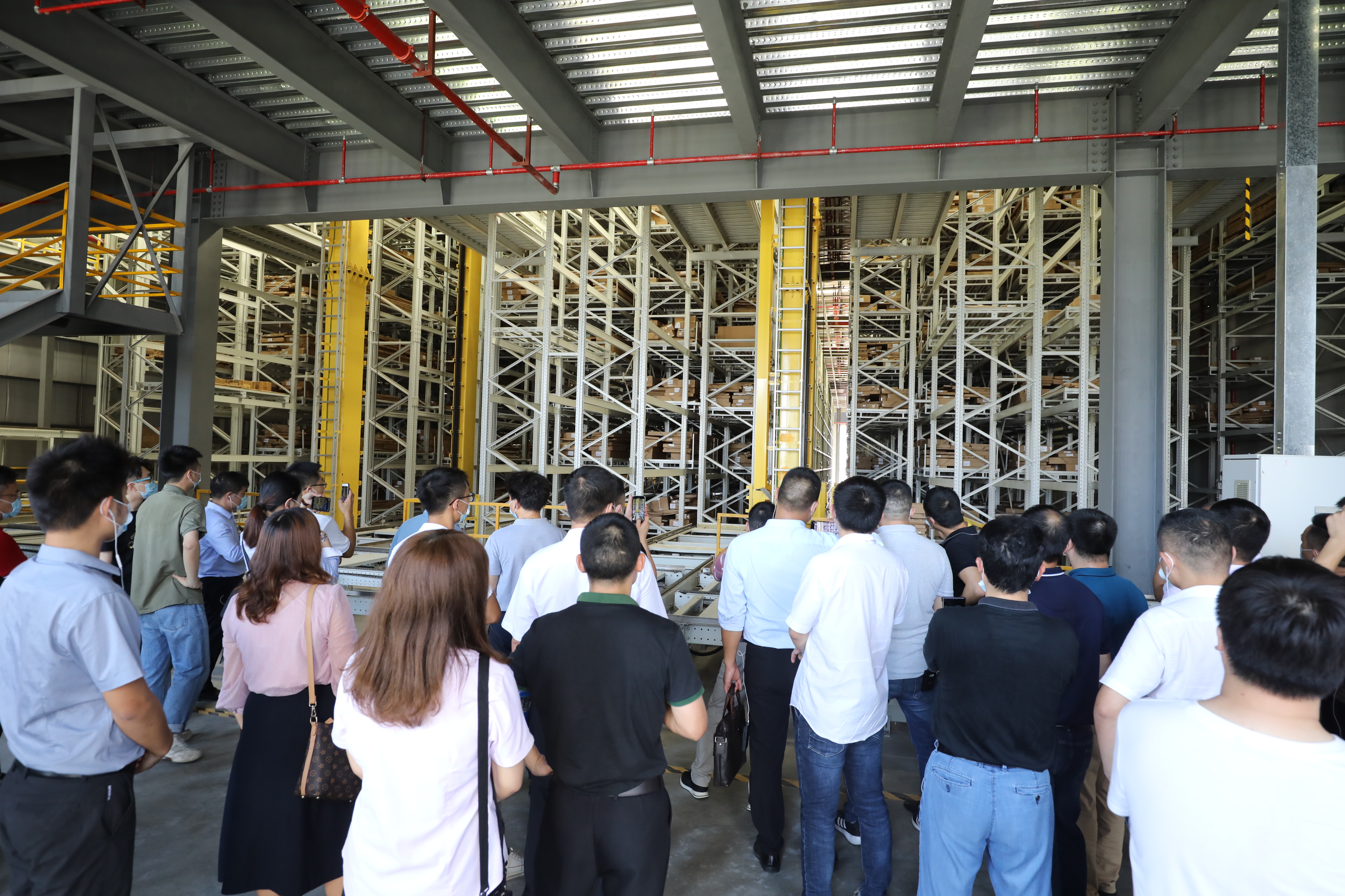 據悉,本次活動參觀的重點是行業領先的卡諾亞智能立體倉庫。作為廣東省技術改造重點投資項目,倉庫占地五千余㎡,擁有四條有軌巷道堆垛機、十五列堆垛放置區和上萬個倉位,高度22m,物流轉量可滿足十萬㎡以上的生產,是目前定制行業內多層聯動智能化程度最高的立體倉庫。相比于傳統的倉儲作業,將發貨時間由傳統的1.5小時縮減至0.5小時,可節省人工50%以上,效率可提高100%以上。更讓人稱道的是,還能充分利用夜間空隙,實現無人值守備貨作業,大大提升了次日的車輛裝貨、出貨效率。現場眾多參觀者,在觀摩卡諾亞全自動智能立體倉庫之后,一致認為這能有效解決定制家居產品包裝大小不一且具有唯一性、同一終端訂單包裝件數多且分散等行業痛點,值得會員企業學習借鑒與大力推廣。
