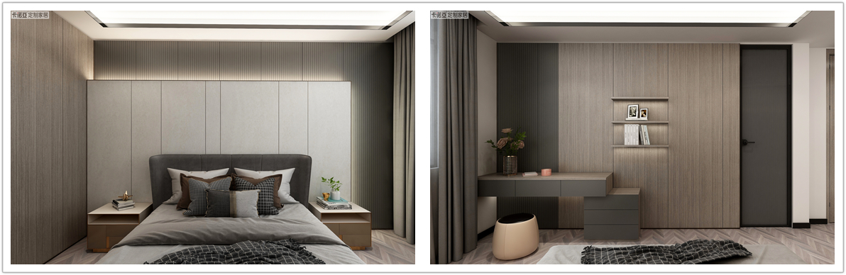 卡諾亞除了賦予新中式風格流金溢彩別樣的輕奢美之外,更從空間定制的高度研發(fā)配套家居,為廣大消費者精心設計了風格統(tǒng)一的房門和隱形門五金,一站購齊、省錢省事。其中用于房門隱形門的智能鎖,可手機掌控,多種開啟方式,反鎖功能,選配更智能;黑色鋁合金金屬擱板,用于床頭柜、餐邊柜等的銅色金屬腳,簡約不簡單,從細節(jié)處體現(xiàn)生活的精致。