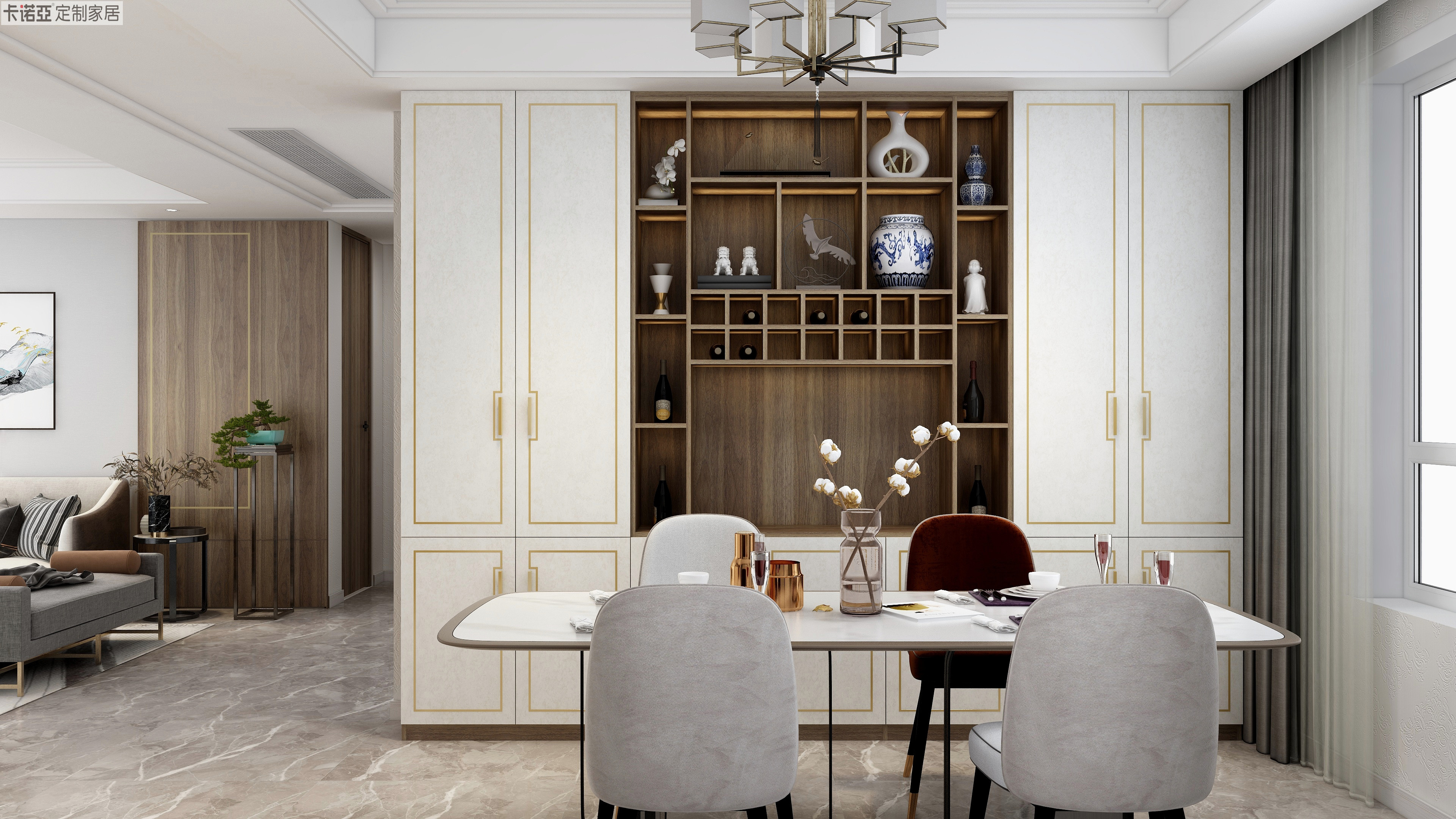 流金溢彩系列,整體設計不繁瑣,不重色彩的濃烈而重線條的表達,以局部的細節(jié)彰顯空間獨特的韻味和文化厚度,形成傳統(tǒng)與現(xiàn)代元素和諧共生的新中式空間。流金溢彩系列點睛之筆在于門板、護墻板、抽面采用內(nèi)嵌式回紋型金屬條,一改門板平面單一的刻板印象,滿滿的輕奢高級感撲面而來。