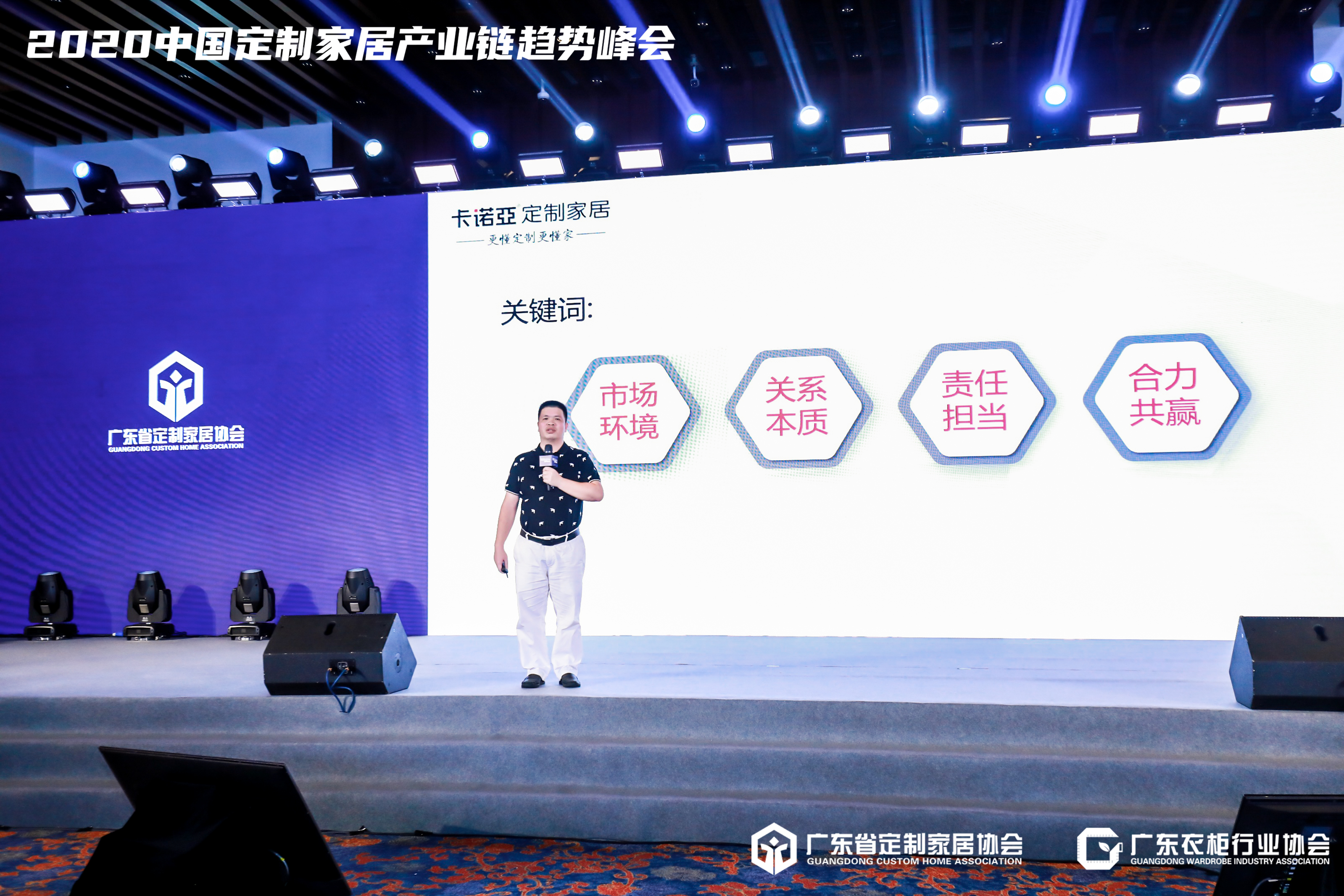 11月8日,由廣東省定制家居協會、廣東衣柜行業協會舉辦的“創新趨勢·創變不止”2020定制家居產業鏈趨勢峰會,在廣州隆重召開。卡諾亞董事長兼總經理程國標作為中國定制家居產業鏈戰略委員會聯合發起人及首批智庫專家,應邀出席本次活動,卡諾亞副總裁兼營銷總經理賴永精,發表了《同心協力,服務需求》的主題性演講,分享定制家居供應鏈最新趨勢,全面助力產業鏈上下游交流融合,提高行業的產業發展水平。