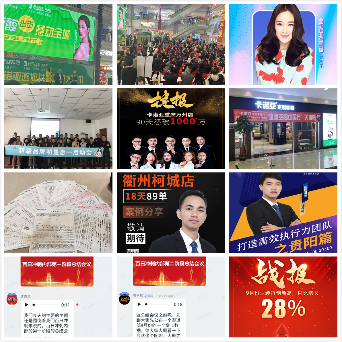 從9月初至11月底百日沖刺收尾之際,近100天時間里,卡諾亞經銷商在面對2020年嚴峻市場的不利環境之下,有一批優秀門店脫穎而出,用實際行動給出了最有力的答案!他們劈波斬浪、沖刺巔峰,實現終端業績的逆勢飄紅,這些優秀的突圍者包括山西太原居然之家坤澤店、山西運城大明宮至尊館、重慶萬州店、天津店、衢州柯城店、貴陽店等,卡諾亞及時地將這些優秀門店的成功案例進行總結,通過線上線下廣泛傳播與分享,借鑒成功案例助力門店銷量增長,達成團隊快速成熟,讓更多的經銷商踏入優秀渠道商行列。