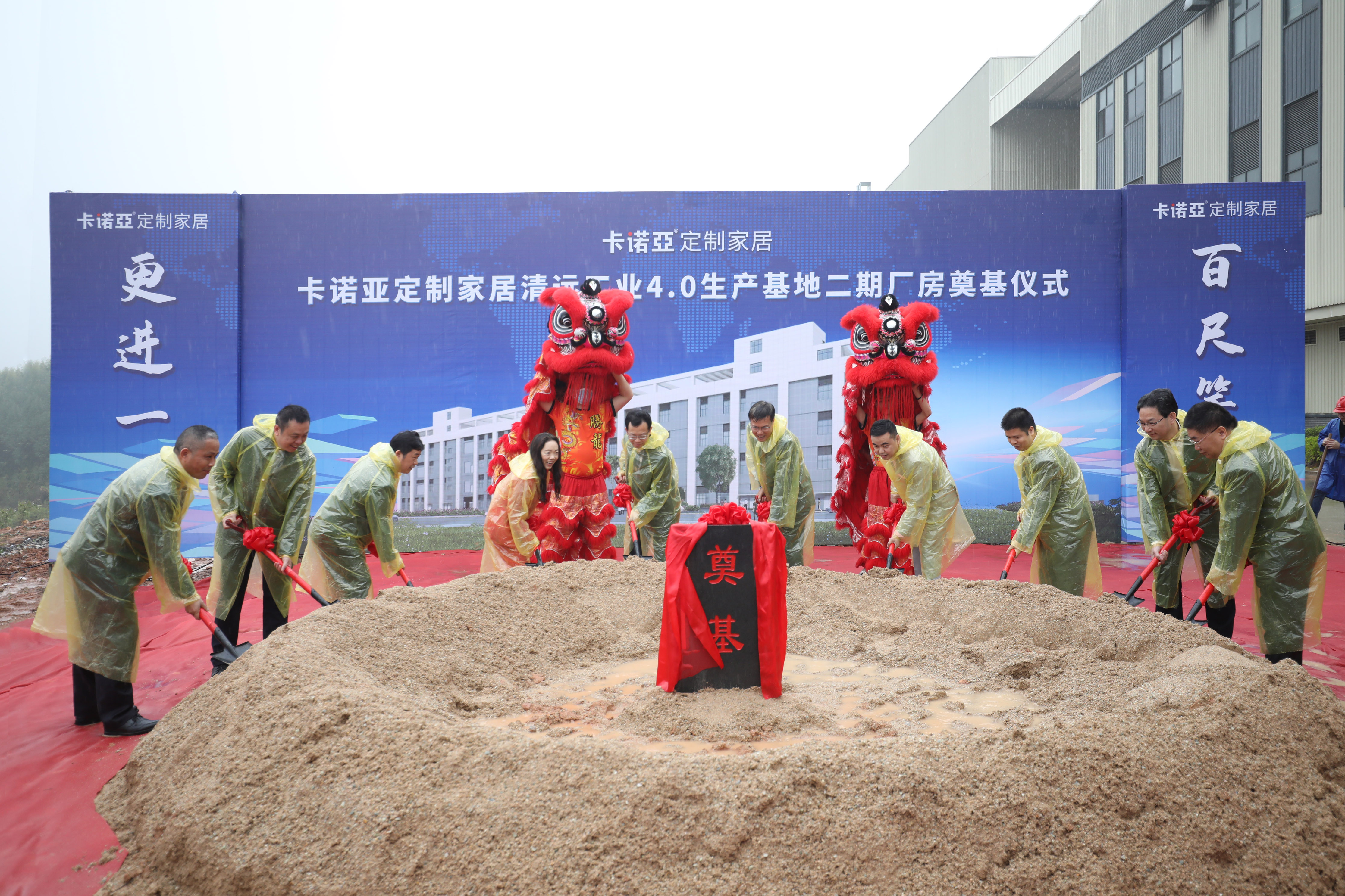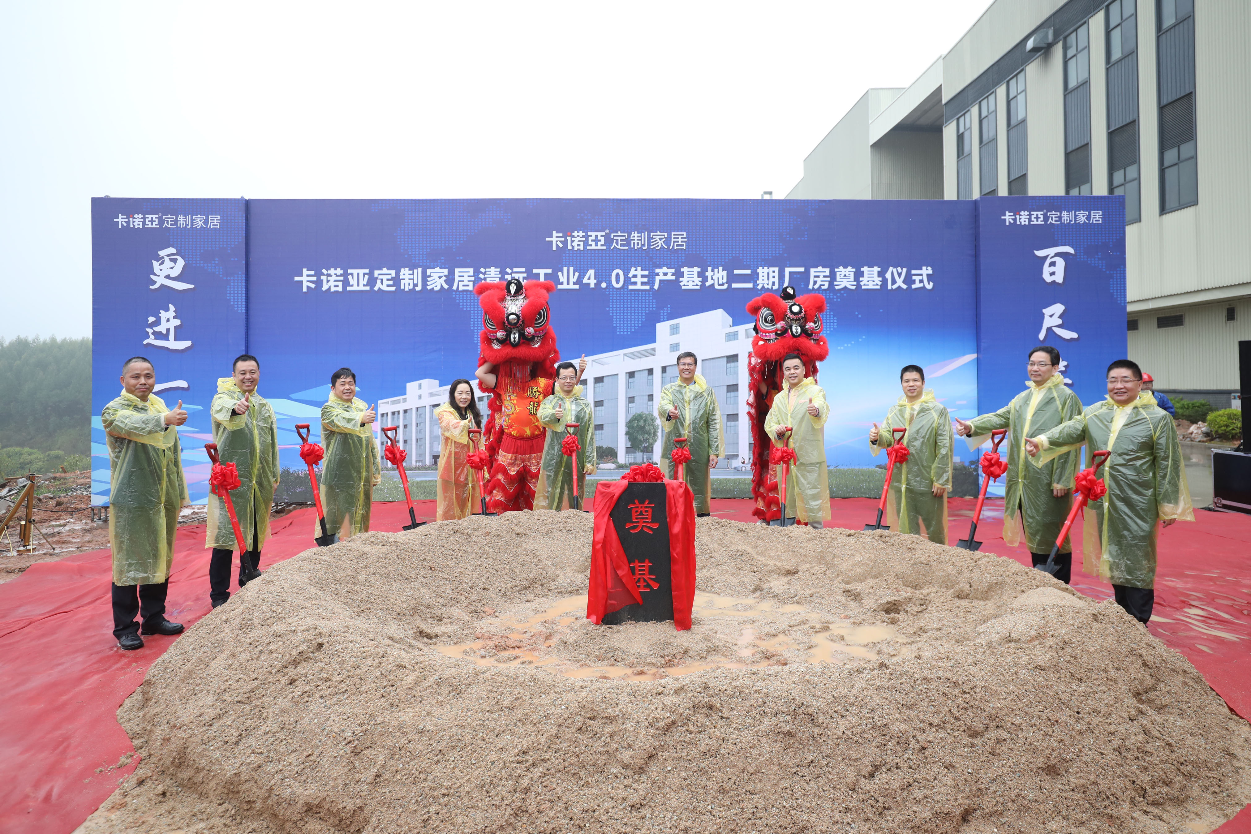 3月6日上午,以“百尺竿頭,更進(jìn)一步”為主題的卡諾亞定制家居清遠(yuǎn)工業(yè)4.0生產(chǎn)基地二期廠房奠基儀式,在清遠(yuǎn)市清城區(qū)源潭鎮(zhèn)峽山工業(yè)園隆重舉行。卡諾亞定制家居董事長兼總裁程國標(biāo)先生、執(zhí)行董事吳紹華女士、副總裁兼生產(chǎn)中心總經(jīng)理葉喜都先生、副總裁兼營銷中心總經(jīng)理賴永精先生、工程公司總經(jīng)理葉建中先生、董事會秘書萬成文先生等公司“董高監(jiān)”人員,以及當(dāng)?shù)卣I(lǐng)導(dǎo)、行業(yè)協(xié)會領(lǐng)導(dǎo)、客戶代表、供應(yīng)商代表、中介機(jī)構(gòu)代表、媒體朋友等嘉賓參加了儀式。