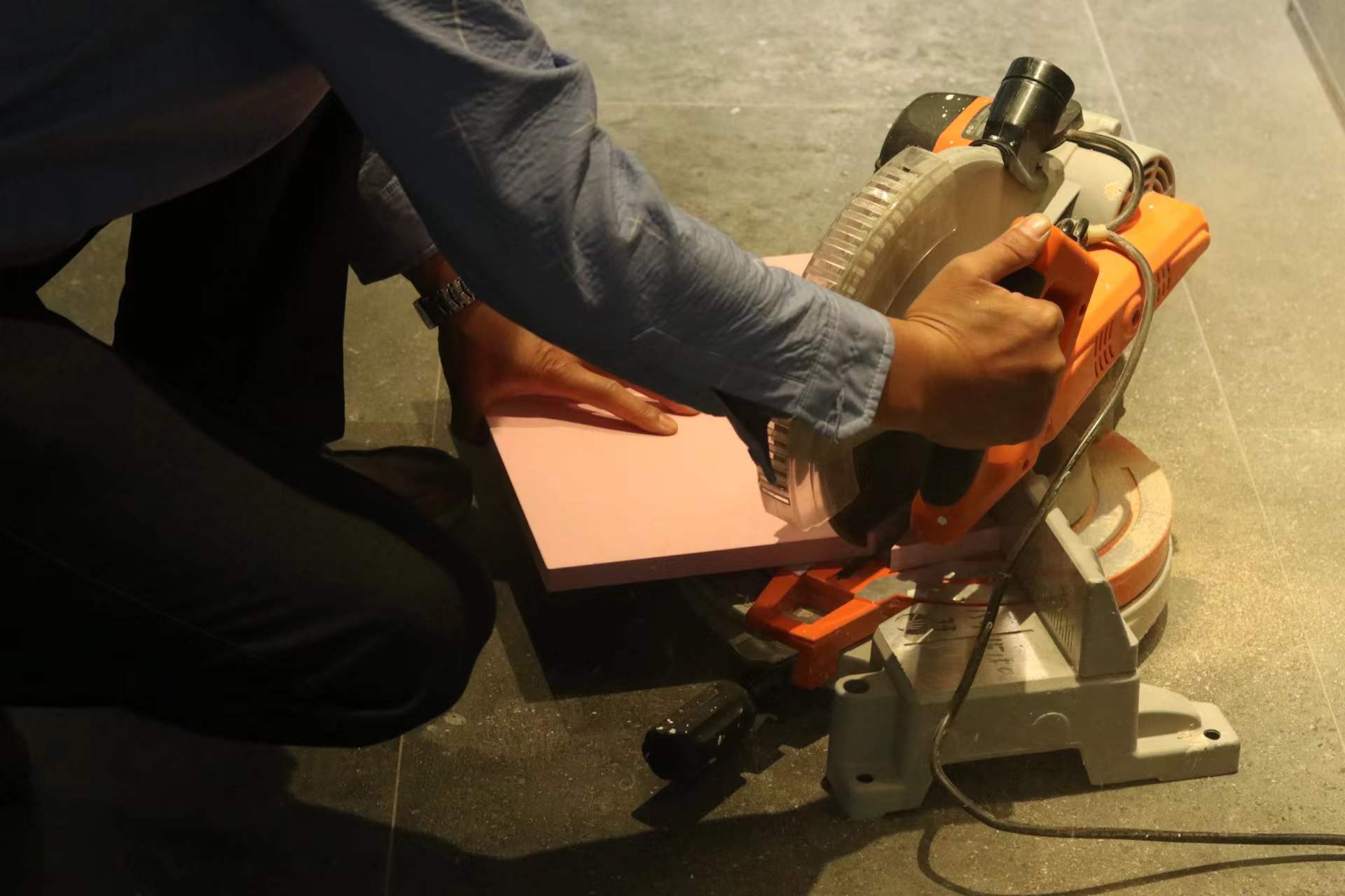 為測(cè)試康醛板的抗變形、防潮能力等,小編在現(xiàn)場(chǎng)進(jìn)行了多個(gè)實(shí)驗(yàn)。測(cè)評(píng)現(xiàn)場(chǎng),卡諾亞工作人員取出一塊完整的康醛板,并將其切割成小塊。可以看見,板材的切割口處紋理清晰,與普通顆粒板稍有不同。切割之后,板材并未釋放半點(diǎn)兒異味。